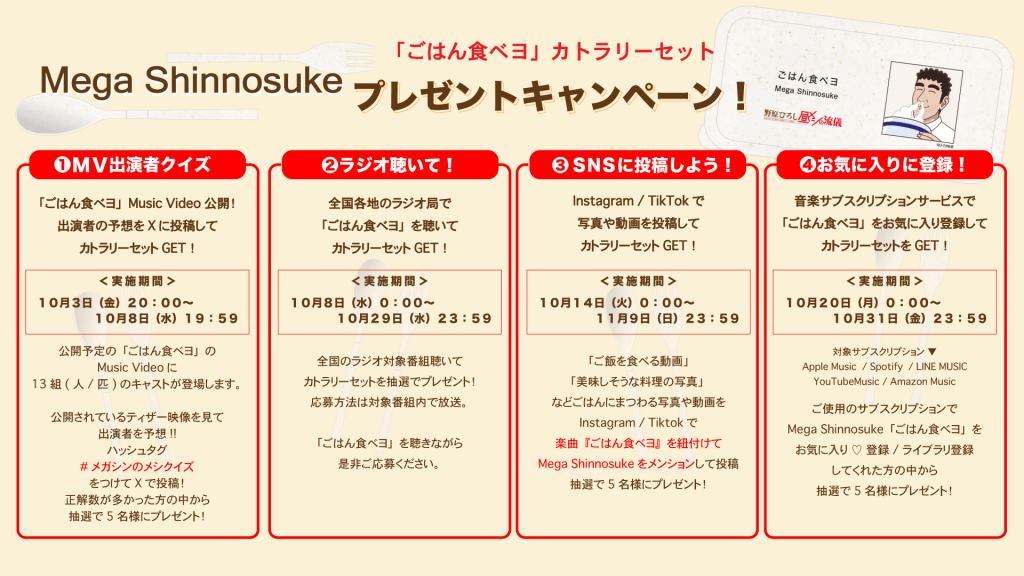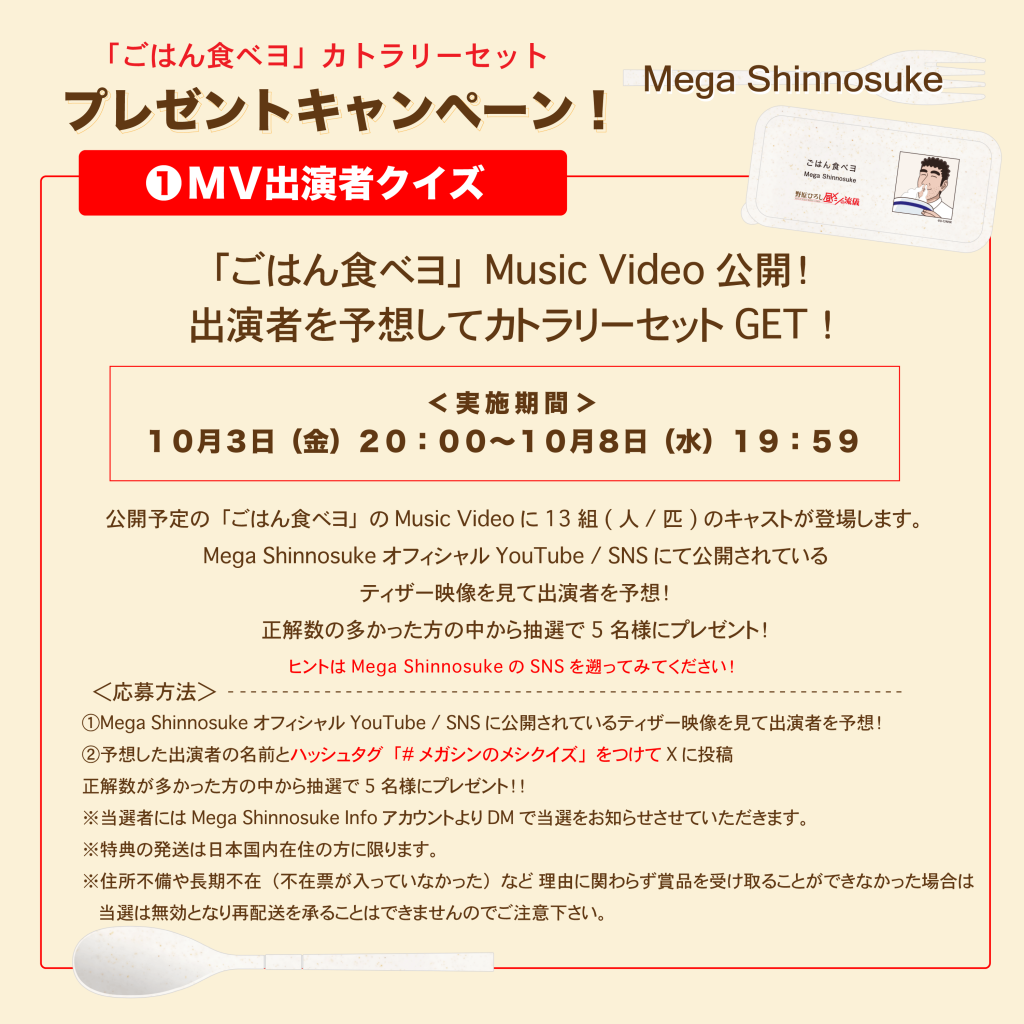 第一弾は10月8日(水)20:00に公開される「ごはん食べヨ」Music Videoの出演者を予想し